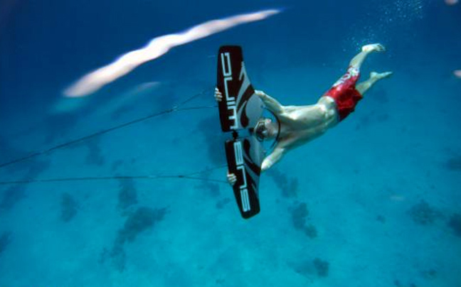 Για να μπορέσουμε να μεταμορφωθούμε σε υποβρύχιο Σούπερμαν με το συγκεκριμένο τρόπο, χρειάζεται η σανίδα μας να είναι δεμένη με σχοινί και να την τραβάει μια βάρκα, κάτι σαν θαλάσσιο σκι, που όμως γίνεται κάτω από την επιφάνεια του νερού.
