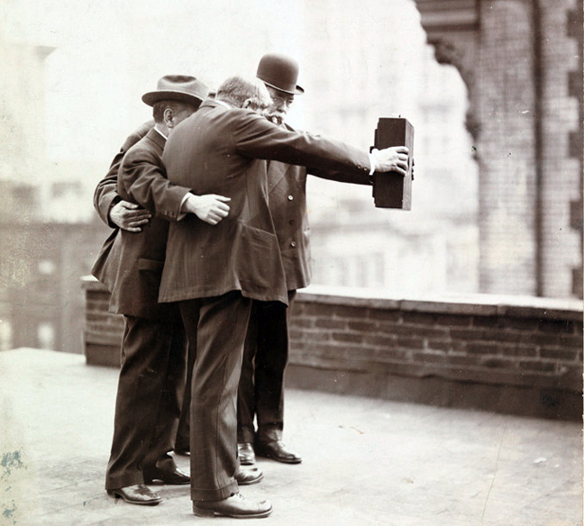 Ήταν στη Νέα Υόρκη λοιπόν, «γύρω στο 1920», όπως διαβάζουμε, όταν ο Joe Byron (της Byron Company), ο Pirie MacDonald, ο συνταγματάρχης Marceau, ο Pop Core και ο Ben Falk, όλοι τους φωτογράφοι, απεικονίστηκαν και πέρασαν στην ιστορία της τεχνολογικής τρέλας που έχει κατακλύσει σήμερα τον ηλεκτρονικό μας κόσμο!