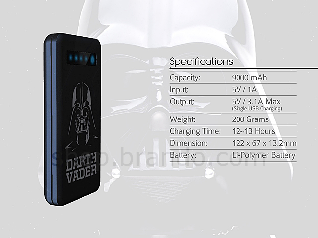 Ο βολικός φορητός φορτιστής Star Wars Darth Vader ProMini 9000 ζυγίζει μόλις 200 γραμμάρια και με διαστάσεις 122mm x 67mm x 16.2mm χωράει όχι μόνο στην τσάντα, αλλά και στην τσέπη σας!