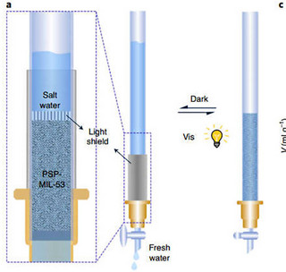 Τα MOF χρησιμοποίησε ο καθηγητής Huanting Wang για να φτιάξει το δικό του υλικό PSP-MIL-53, το οποίο μπορεί να αιχμαλωτίζει το αλάτι. Όπως μας λέει στη μελέτη του στο περιοδικό «Nature Sustainability», όταν η δομή εκτεθεί στην υπεριώδη ακτινοβολία, απελευθερώνει τα μόρια που έχει συλλάβει, τα οποία μπορούν να επαναχρησιμοποιηθούν.