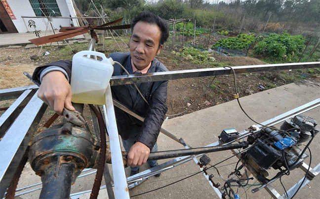 Αποφασισμένος να κατασκευάσει το δικό του χειροποίητο ελικόπτερο είναι ένας χωρικός από την Κίνα.