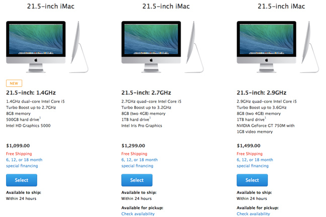 Το νέο φτηνότερο αυτό 21,5 ιντσών μοντέλο έχει έναν επεξεργαστή 1.4 GHz dual-core i5, αρκετά αργό σε σχέση με τα αλλά μοντέλα, 8GB RAM, καθώς και έναν σκληρό δίσκο 500 GB.