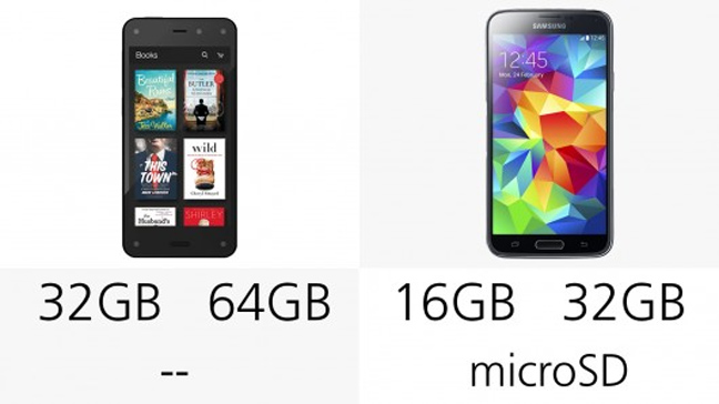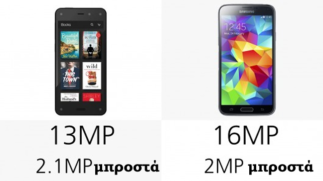 Έτσι, μετά τη σύγκριση με το iPhone 5s, η σελίδα gizmag.com προχωρά στη σύγκριση των τεχνικών χαρακτηριστικών του Fire Phone με το Galaxy S5.
