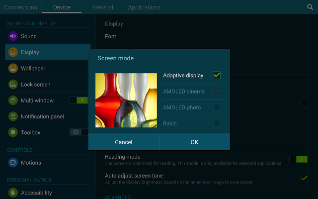 4. Η οθόνη (χρώμα, ευκρίνεια, αντίθεση) προσαρμόζεται ανάλογα με τη χρήση που κάνετε στην ταμπλέτα.