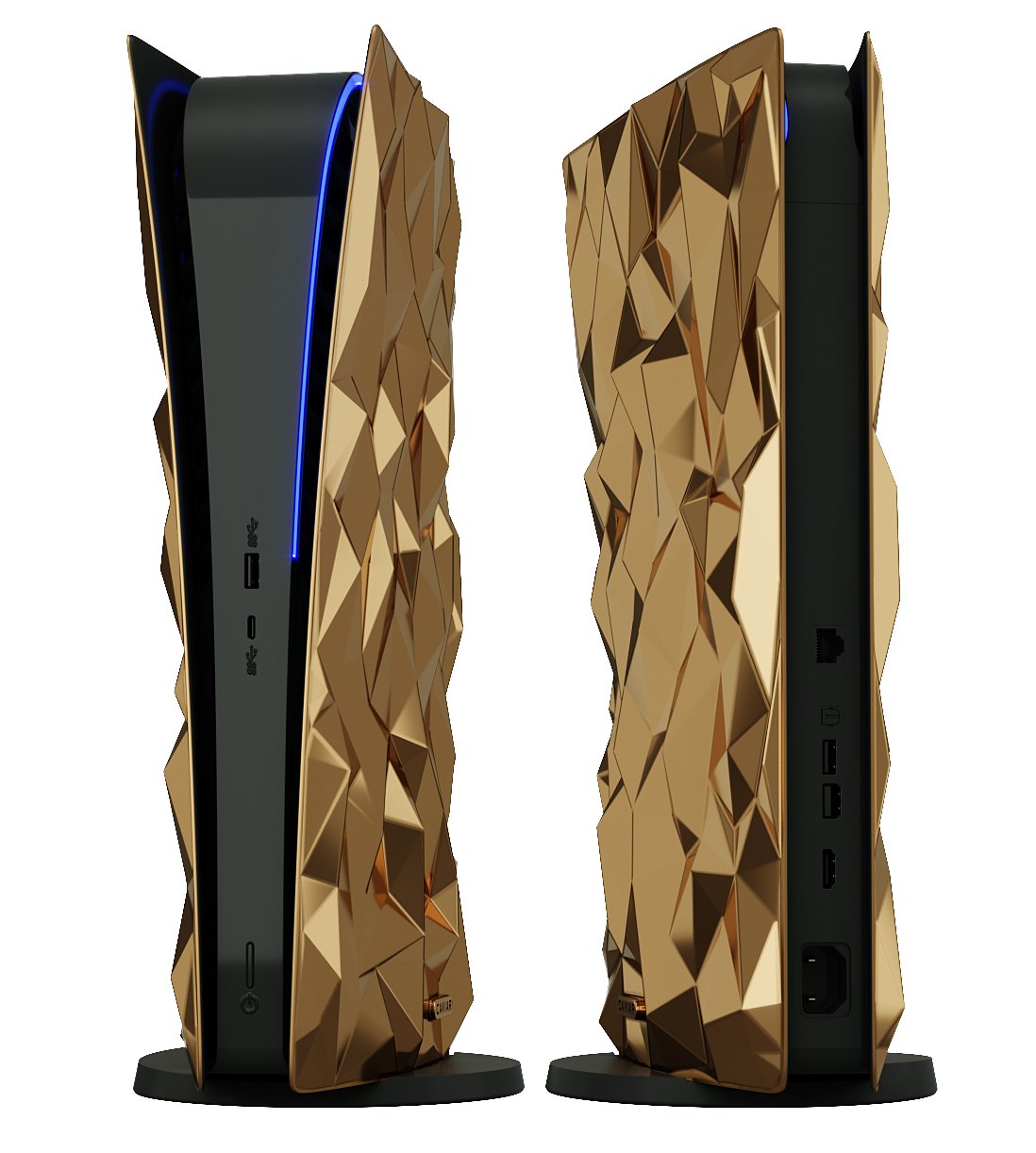 Το Golden Rock PS5 θα είναι καλυμμένο με 4,5 κιλά χρυσού 18 καρατίων έκαστο. Η διαδικασία για την κάθε χρυσή κονσόλα παίρνει περίπου 4 μήνες και ξεκινάει με οκτώ διαφορετικά φύλλα χρυσού που πρέπει να πάρουν το γεωμετρικό σχήμα ούτως ώστε να θυμίζουν λίθο και να κολλήσουν πάνω στο PS5.