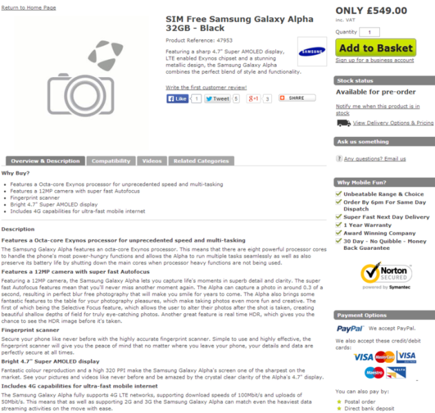 Σε λίγες ημέρες αναμένεται να ξεκινήσει η διάθεση του Samsung Galaxy Alpha στην αγορά της Βρετανίας.