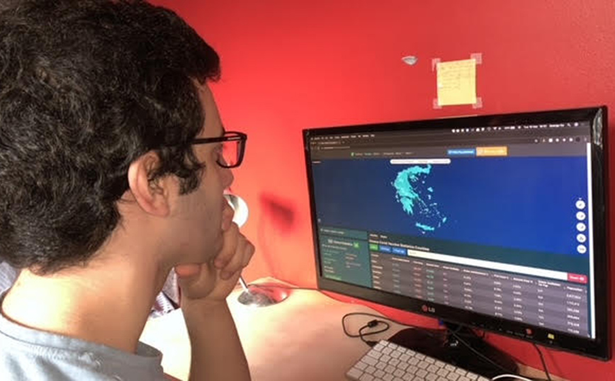Γεννήθηκε στη Γλυφάδα αλλά πλέον ζει στο Εδιμβούργο όπου και σπουδάζει. Η αγάπη του για τους υπολογιστές, το ξέσπασμα της πανδημίας και οι ατέλειωτες ώρες εγκλεισμού τον έκαναν να πάρει τη μεγάλη απόφαση που δεν ήταν άλλη από το φτιάξει τη δική του ιστοσελίδα για τον κορονοϊό. Πρόκειται για τον 22χρονο Γιώργο Καραμπάση που με τη σελίδα του στο διαδίκτυο παρουσιάζει τα τελευταία στατικά στοιχεία για τον ιό και τους εμβολιασμούς όχι μόνο ανά χώρα, αλλά και ανά νομό και περιοχή.