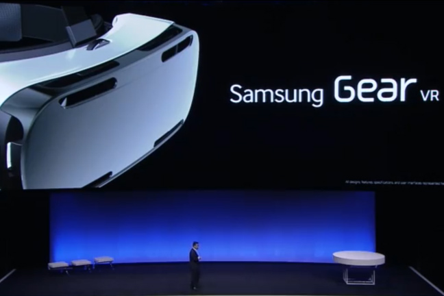 Την έκπληξη έκανε η Samsung με το Virtual Reality Headset. Πρόκειται για μια συσκευή εικονικής πραγματικότητας, την οποία η Samsung άφησε για το τέλος. To Samsung Gear VR παρουσιάστηκε ως η απόλυτη εμπειρία θεάματος.