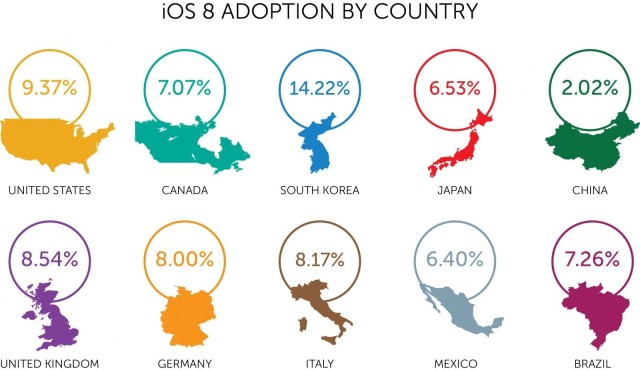 Εντύπωση επίσης προκαλεί το γεγονός πως τα iPod Touch οδηγούν τις αναβαθμίσεις σε iOS 8 και έπειτα έχουμε τα iPhone, ενώ μόλις το 4% των χρηστών έσπευσε να αναβαθμίσει το λογισμικό στα iPads.