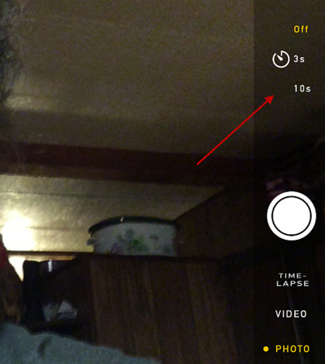 Η εφαρμογή φωτογραφικής μηχανής στο iOS 8 έχει πλέον χρονόμετρο που μπορείτε να ρυθμίσετε στα 3 ή 10 δευτ. κλικάροντας το εικονίδιο του ρολογιού.