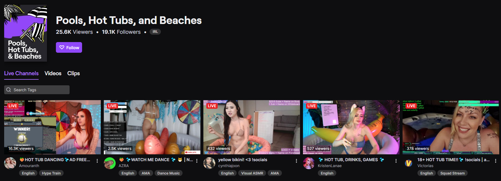 Πάντως, η πλατφόρμα πραγματοποίησε ριζική αλλαγή στη στάση της, καθώς από την τιμωρία της Amouranth (σ.σ. η κοπέλα στην φωτογραφία) κατέληξε στο να κάνει μία ξεχωριστή κατηγορία για αυτά τα streams με τίτλο «Pools, Hot Tubs, and Beaches».
