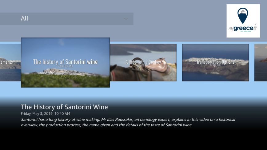 Ένα εξαιρετικό apllication που περιλαμβάνει μικρά αλλά κατατοπιστικά βίντεο, ως ένας ταξιδιωτικός οδηγός της Σαντορίνης, βρίσκεται διαθέσιμο για όλους στο Amazon. Η ελληνική εταιρεία Viewmax Media ανέβασε την εφαρμογή-ταξιδιωτικό οδηγό τον Αύγουστο του 2019 στην πλατφόρμα και από τότε βρίσκεται στη 2η θέση της κατάταξης της κατηγορίας «travel guide» της Amazon. Και μάλιστα με 4,1 αστέρια στις αξιολογήσεις της πλατφόρμας.
