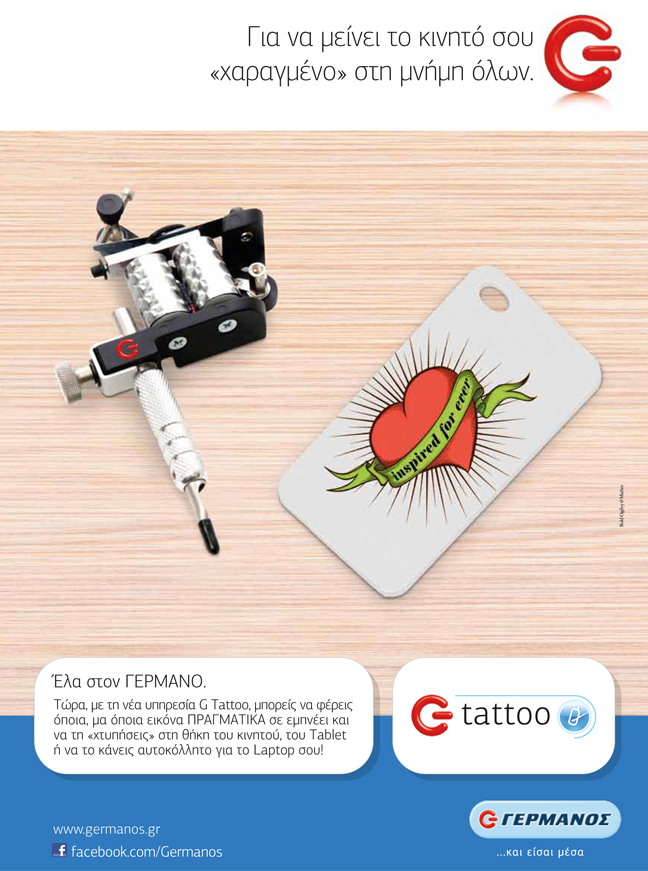 Τη δυνατότητα να σχεδιάσουν τη θήκη του smartphone, του tablet ή να κάνουν αυτοκόλλητο για το smartphone, το tablet ή το laptop τους προσφέρει στους πελάτες του αποκλειστικά ο ΓΕΡΜΑΝΟΣ με τη νέα υπηρεσία «GTattoo».