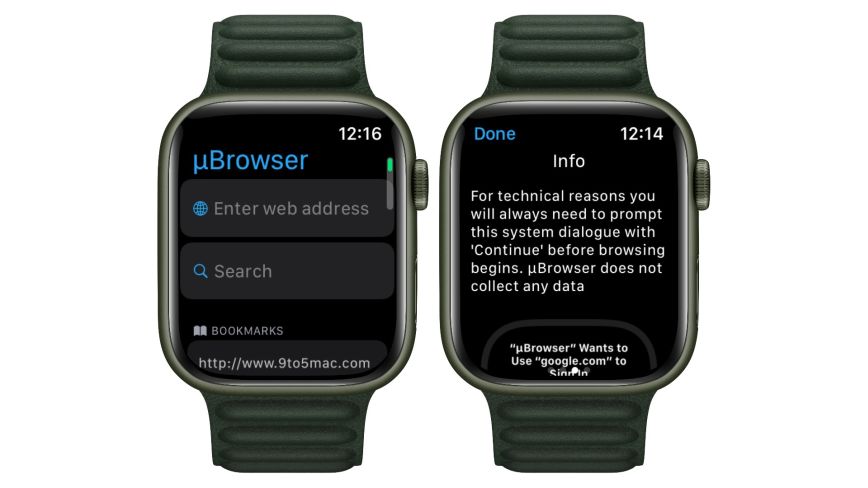 Το μBrowser είναι εξαιρετικά εύκολο στη χρήση του και σας επιτρέπει να κάνετε αναζήτηση ή να εισάγετε μια διεύθυνση URL απευθείας στο ρολόι, αλλά αν χρησιμοποιείτε παράλληλα και το companion app στο iPhone μπορείτε άμεσα να προσθέσετε τις αγαπημένες σας σελίδες. Τέλος, όταν πατήσετε σε κάποιο site θα σας βγάλει μια επιλογή για να επιβεβαιώσετε, καθώς όπως λέει η εταιρία είναι απαραίτητη από την Apple. Αξίζει να αναφερθεί, ότι το app δε συλλέγει καθόλου τα δεδομένα σας.