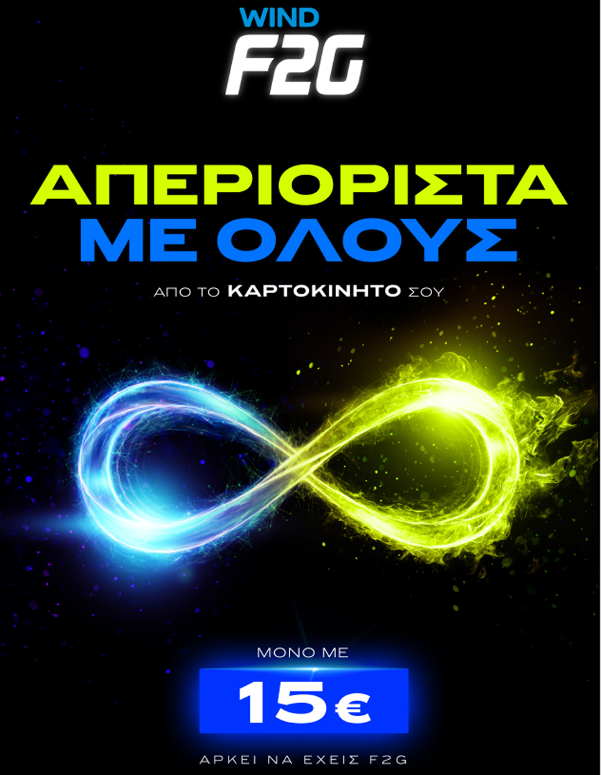 Το ανανεωμένο πρόγραμμα Καρτοκινητής WIND F2G προσκαλεί υφιστάμενους και νέους συνδρομητές να ζήσουν την εμπειρία της απεριόριστης ομιλίας προς όλα τα δίκτυα χωρίς περιορισμούς, με ακόμη περισσότερα Data & SMS: