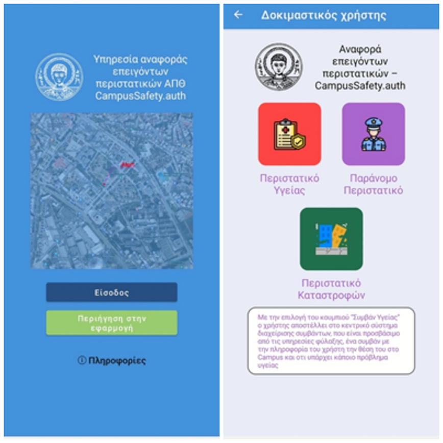 Μόλις ένα άγγιγμα στην εφαρμογή, στην οθόνη δηλαδή του κινητού τηλεφώνου οποιουδήποτε μέλους της πανεπιστημιακής κοινότητας που κινείται στο campus και αναγνωρίζει κάποια απειλή ασφάλειας ή κίνδυνο για την υγεία του είναι αρκετό ώστε να υπάρξει άμεση κινητοποίηση της υπηρεσίας ασφάλειας του ΑΠΘ ώστε να αντιμετωπιστεί το περιστατικό.