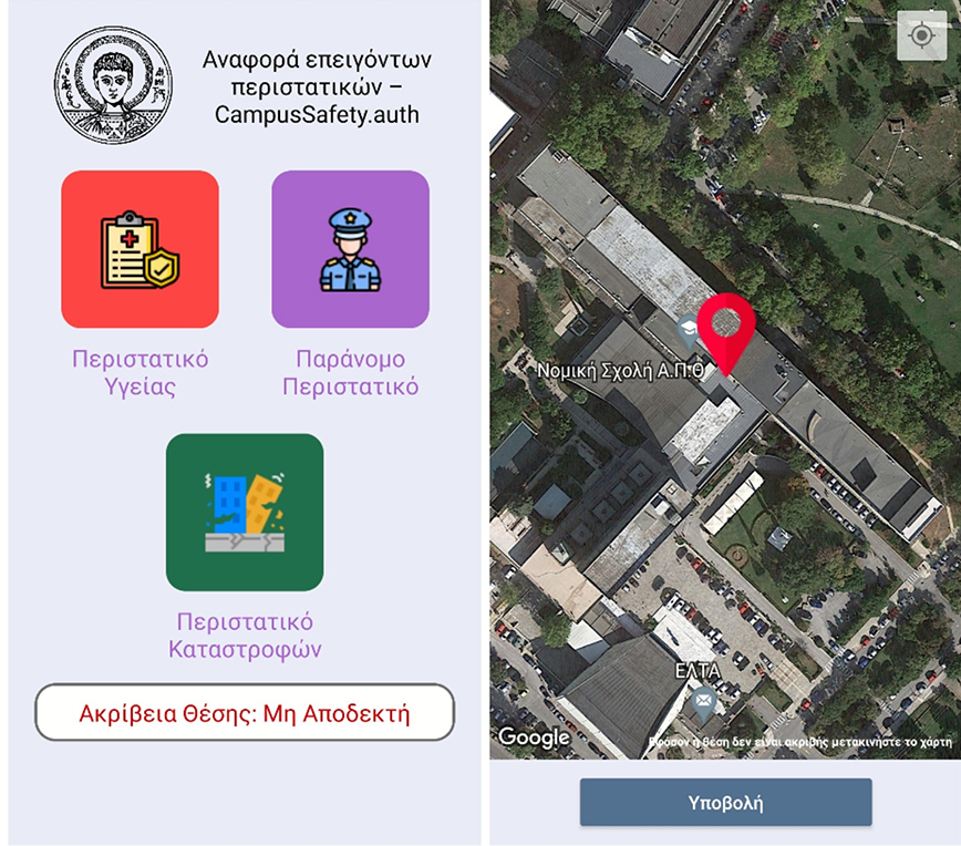 Η υπηρεσία «Panic Button» για την αναφορά επειγόντων περιστατικών εντός του campus του Αριστοτελείου Πανεπιστημίου Θεσσαλονίκης (ΑΠΘ) τέθηκε σε λειτουργία και ήδη περισσότεροι από 500 φοιτητές του ΑΠΘ έχουν εγκαταστήσει στις συσκευές των κινητών τηλεφώνων τους την εφαρμογή «AUTh Campus Safety», που είναι διαθέσιμη μέσω της ψηφιακής πλατφόρμας διανομής εφαρμογών «GooglePlay».