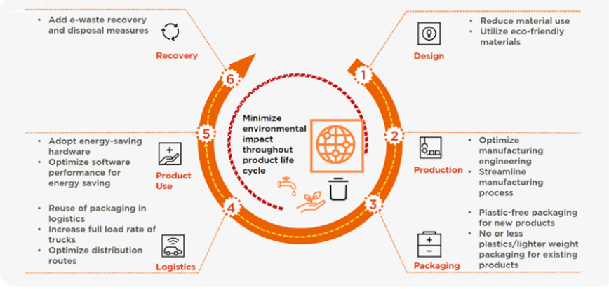 Η Xiaomi έχει μειώσει την κατανάλωση πόρων και ελαχιστοποίησε τις περιβαλλοντικές επιπτώσεις των προϊόντων της, αξιοποιώντας την πρόοδο της τεχνολογίας και βελτιστοποιώντας τις διαδικασίες παραγωγής. Όπως φαίνεται στο παρακάτω γράφημα, οι περιβαλλοντικές επιπτώσεις μειώνονται σημαντικά καθ’ όλη τη διάρκεια του κύκλου ζωής των προϊόντων της Xiaomi.