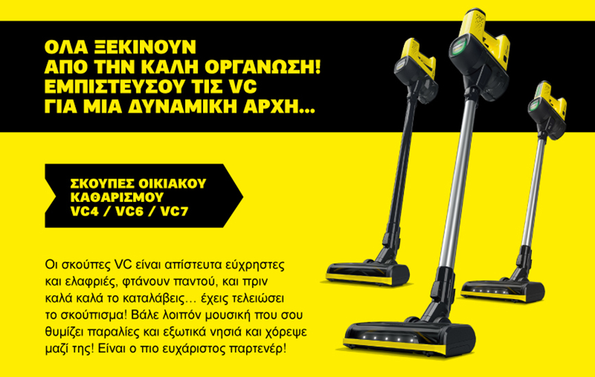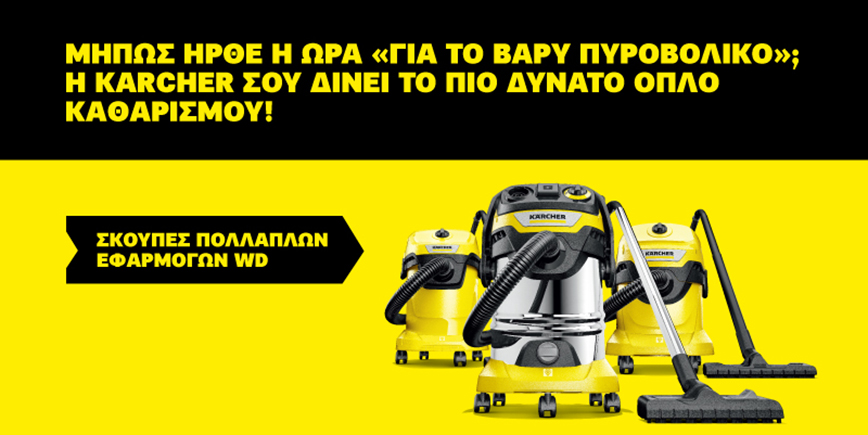 Μήπως νιώθεις την επιστροφή στο σπίτι μετά τις καλοκαιρινές διακοπές… βουνό; Γι’ αυτό έχεις την Kärcher! Η Kärcher σε υποδέχεται σπίτι σου με μοναδικές, εύχρηστες λύσεις καθαρισμού ώστε να κατακτήσεις το «βουνό» εύκολα και οικονομικά, χωρίς κόπο και με την άφταστη αποτελεσματικότητα που μόνο η Kärcher μπορεί να εγγυηθεί.