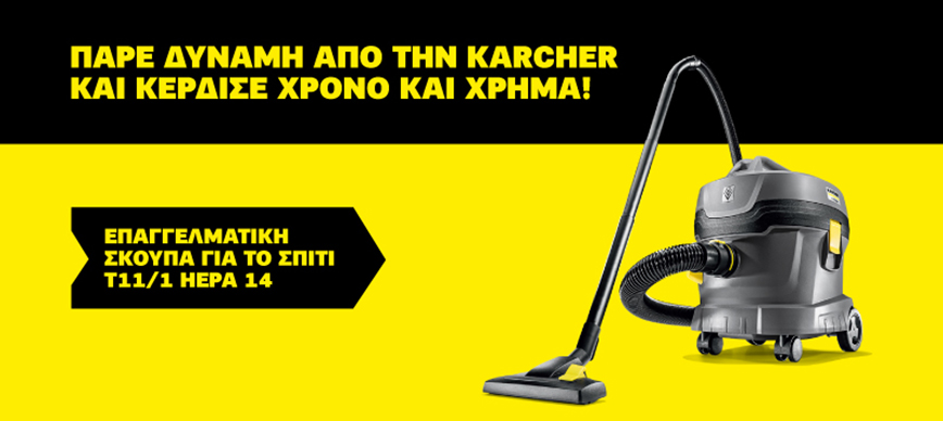 Η Kärcher σε υποδέχεται σπίτι σου με μια πραγματικά μοναδική σκούπα! Γιατί η Τ11/1 ΗΕΡΑ 14 είναι επαγγελματική αλλά και απίστευτα οικονομική! Ο ιδανικός συνδυασμός! Κάν’το λοιπόν όπως οι επαγγελματίες!