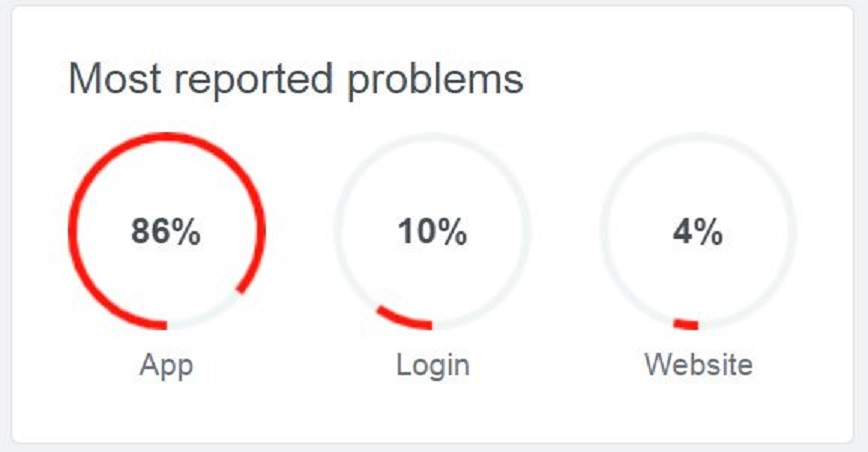 Σύμφωνα με τον ιστότοπο downdetector.com, το 86% των χρηστών εντοπίζει πρόβλημα στην εφαρμογή, το 10% στη σύνδεση και το 4% στην ιστοσελίδα της πλατφόρμας.