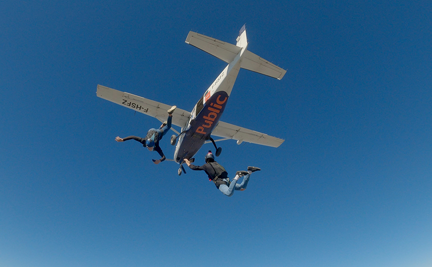 Συγκεκριμένα, την Παρασκευή 23 Σεπτεμβρίου και ώρα 8 το πρωί, οι παθιασμένοι για τεχνολογία Apple Champions του Public έγιναν sky divers για μια μέρα. Με την αδρεναλίνη στα ύψη, έκαναν μια εντυπωσιακή βουτιά από τα 14.000 πόδια, καταγράφοντας κάθε δευτερόλεπτο της εμπειρίας τους μέσα από τον μοναδικής πιστότητας φακό του iPhone 14 Pro.Το εντυπωσιακό τους βίντεο, που είναι διαθέσιμο εδώ, κόβει την ανάσα. H βουτιά των Apple Champions του Public μεταδόθηκε από όλα τα social media του #1 retailer στην Ελλάδα, συγκεντρώνοντας σχόλια θαυμασμού από χιλιάδες θεατές.