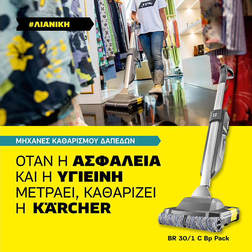 H Kärcher, ο μεγαλύτερος κατασκευαστής συστημάτων καθαρισμού, κατανοεί ότι κάθε επαγγελματίας έχει τις δικές του ξεχωριστές ανάγκες και απαιτήσεις όσον αφορά τον καθαρισμό και την περιποίηση των δαπέδων της επιχείρησης του, είτε πρόκειται για δάπεδα σε παραγωγικούς και αποθηκευτικούς χώρους είτε για δάπεδα σε γραφειακούς χώρους είτε για δάπεδα σε χώρους λιανικής πώλησης. Ανεξάρτητα από το είδος της επιχείρησης και των δαπέδων προς καθαρισμό, τα μηχανήματα της Kärcher παρέχουν μέγιστη απόδοση καθαρισμού, εξοικονομούν χρόνο και πόρους δίνοντας στην επιχείρηση τη δυνατότητα να εστιάσει σε αυτό που είναι πραγματικά σημαντικό. Στόχος της Kärcher είναι να κάνει τη καθημερινότητα απλούστερη και ευχάριστη με ισχυρές, αποτελεσματικές και καινοτόμες λύσεις καθαρισμού.