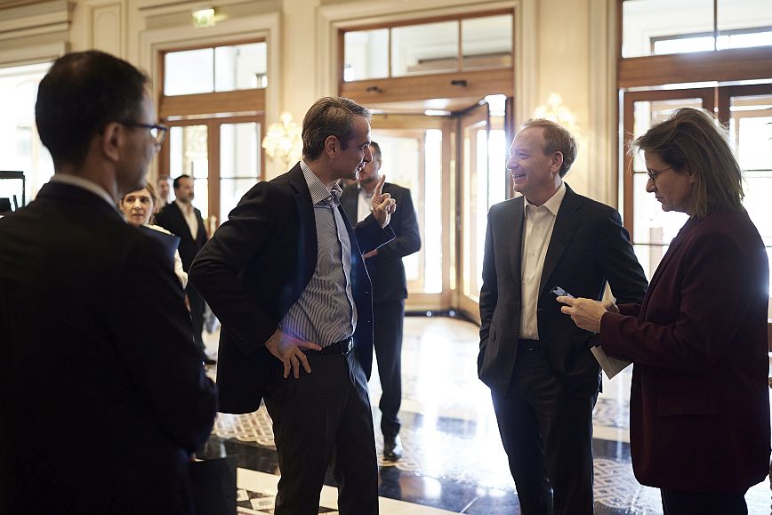 Τον πρόεδρο της Microsoft, Μπραντ Σμιθ, συνάντησε ο Κυριάκος Μητσοτάκης το πρωί του Σαββάτου, στο περιθώριο των εργασιών του forum «The Trilateral Commission».