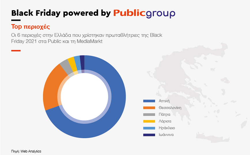 - Οι πρωταθλήτριες περιοχές: Ανάμεσα στις πόλεις που διακρίθηκαν σε online Black Friday αγορές ξεχώρισαν η Αθήνα, η Θεσσαλονίκη, η Πάτρα, η Λάρισα, το Ηράκλειο αλλά και τα Ιωάννινα!