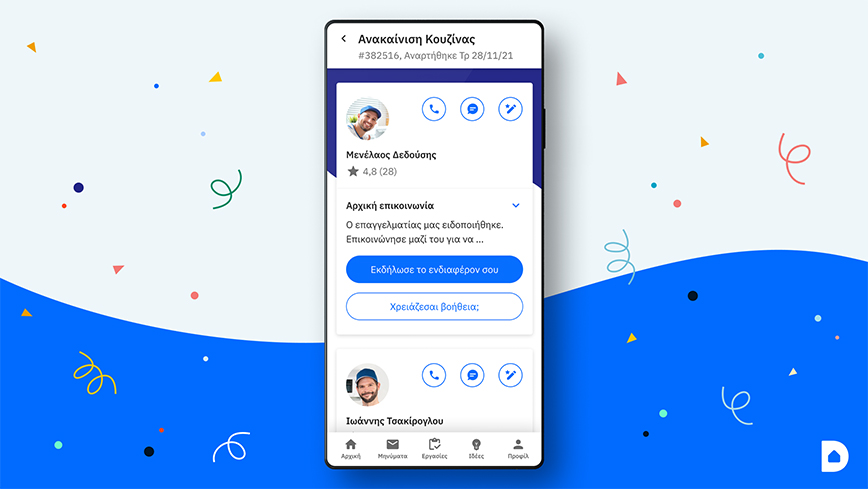 Η απαιτητική και χρονοβόρα offline διαδικασία αναζήτησης επαγγελματία για το Σπίτι εκσυγχρονίζεται ακόμη περισσότερο και μετατρέπεται σε μία απλή, γρήγορη και αξιόπιστη online εμπειρία, χάρη στο Mobile App του Douleutaras. Οι χρήστες μπορούν να βρίσκουν τον τεχνικό επαγγελματία που χρειάζονται και να διαχειρίζονται