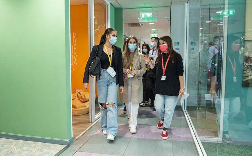 Μέρος της ολοήμερης επίσκεψης, ήταν και η ξενάγηση στις εγκαταστάσεις και τους χώρους εργασίας των κεντρικών γραφείων της Vodafone, τα οποία έχουν προσαρμοστεί για να εξυπηρετούν το υβριδικό μοντέλο εργασίας που πρώτη στην Ελλάδα εισήγαγε η εταιρεία. Μεταξύ των χώρων που επισκέφθηκαν ήταν και το Virtual κατάστημα της Vodafone το οποίο στεγάζεται μέσα στα γραφεία της.