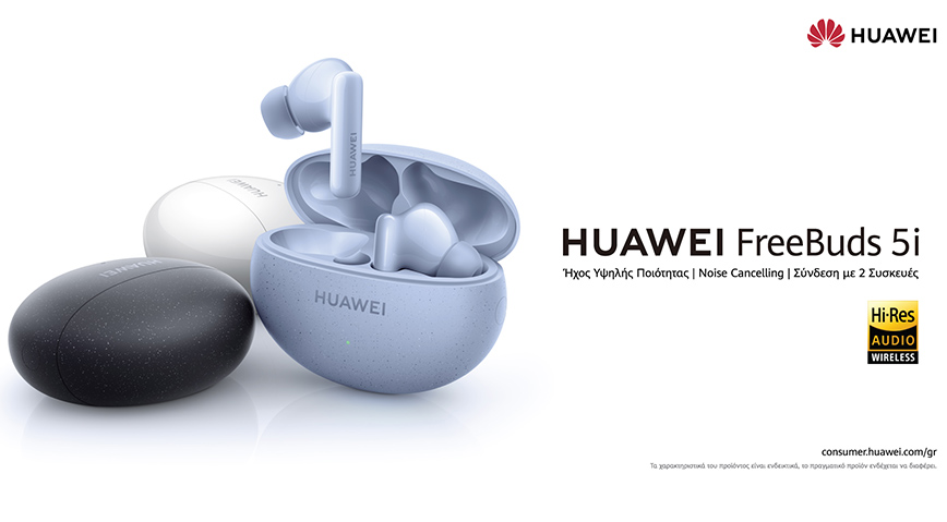 Σήμερα κυκλοφορούν στην Ελληνική αγορά τα HUAWEI FreeBuds 5i, τα νέα True Wireless Stereo (TWS) ακουστικά της Huawei που παρέχουν εξαιρετική ποιότητα ήχου, ακύρωση θορύβου και ευελιξία εφόσον συνδέονται με 2 συσκευές ταυτόχρονα, ανατρέποντας τους κανόνες στην κατηγορία των ακουστικών με τιμή κάτω των 100 ευρώ.