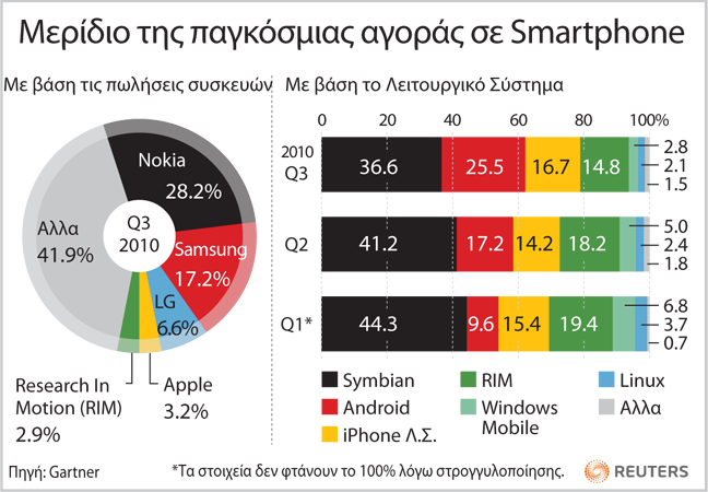 Όπως φαίνεται από το γράφημα το 2010 τα smartphones της Νokia κέρδισαν τις προτιμήσεις του καταναλωτικού κοινού και το λειτουργικό σύστημα Android είχε ιδιαίτερη απήχηση στους καταναλωτές.