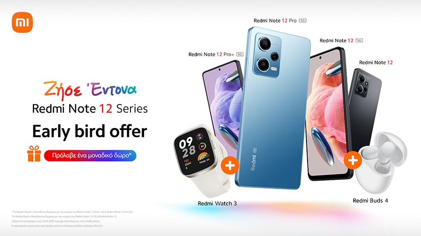 Η Xiaomi ανακοίνωσε την διάθεση της πολυαναμενόμενης σειράς Redmi Note 12 στην Ελληνική αγορά. Η αγαπημένη σειρά περιλαμβάνει τα Redmi Note 12 Pro+ 5G, Redmi Note 12 Pro 5G, Redmi Note 12 5G, το Redmi Note 12 και το Redmi Note 12S.