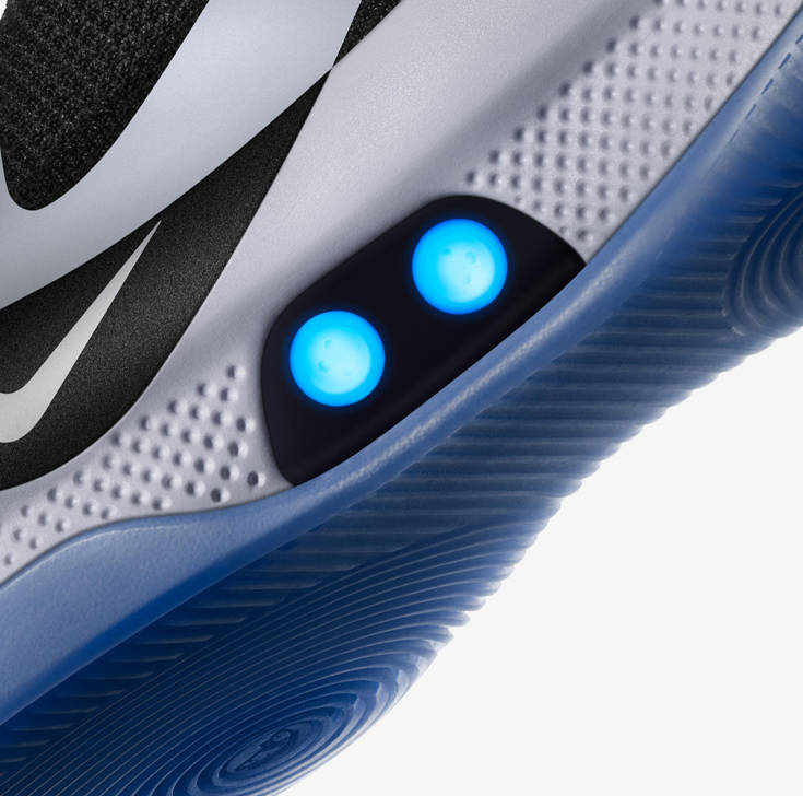 Οι αισθητήρες του Nike Adapt ΒΒ αντιλαμβάνονται την κατάσταση του ποδιού σε διαφορετικές φάσεις του αγώνα, σφίγγοντας ή χαλαρώνοντας ανάλογα το παπούτσι.