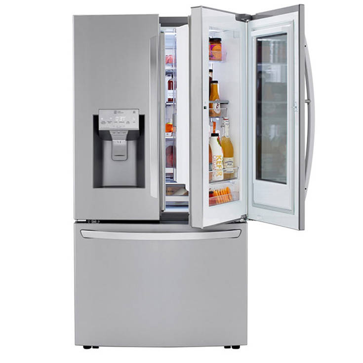 Από την άλλη η LG, που παρουσιάζει δύο εκδοχές του InstaView, αμφότερες με οθόνη 22 ιντσών που γίνεται ακόμα και διαφανής για να βλέπεις τι υπάρχει πίσω από την πόρτα.