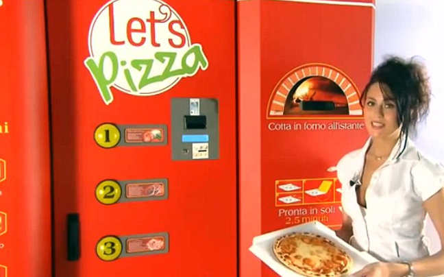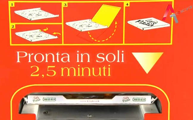 Μια ολλανδική εταιρεία έφτιαξε ένα πρωτότυπο μηχάνημα, το οποίο ονομάζεται «Let’s Pizza» και θα μπορεί να τοποθετηθεί σε δρόμους ή και σε χώρους και θα προσφέρει ολόκληρη πίτσα –και όχι μόνο κομμάτια- με επιλογή ανάμεσα σε τέσσερις –προς το παρόν. Ο καταναλωτής θα μπορεί να διαλέξει ανάμεσα στην κλασική Μαργαρίτα και σε άλλες με σαλάμι, προσούτο ή speck (ένα κλασικό ιταλικό αλλαντικό από καπνιστό κρέας).
