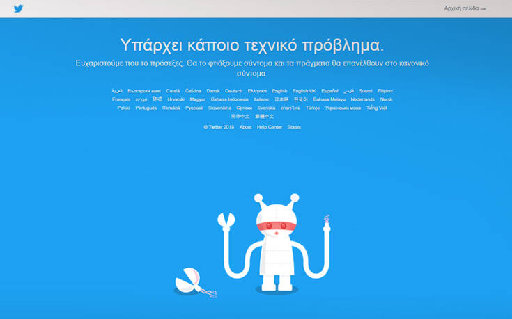 Το δημοφιλές social media, Twitter, δεν λειτουργεί και χιλιάδες χρήστες βλέπουν ένα συγκεκριμένο μήνυμα προσπαθώντας να «φορτώσουν» την σελίδα τους.