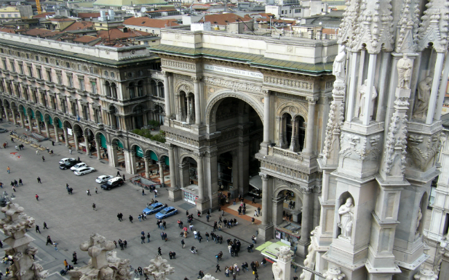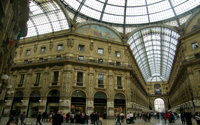 Δεξιά του Ντουόμο θα δείτε την περίφημη Galleria Vittorio Emanuele II, την ιστορική στοά καταστημάτων. Πρόκειται για ένα ιστορικό τριώροφο κτίριο, ένα σύμπλεγμα εμπορικών στοών σε σχήμα σταυρού που φέρεται να κατασκευάστηκε την περίοδο 1865-1877.