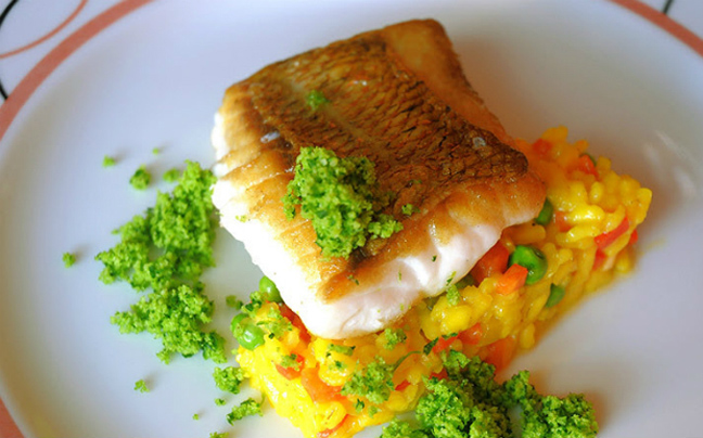 Στο Esencia, η πλούσια ισπανική κουζίνα αναδεικνύεται μέσα από ποιοτικά υλικά, που χρησιμοποιούνται στην πιο αγνή μορφή τους. Ένα από τα πιο δημοφιλή πιάτα είναι το φιλέτο ψαριού με ριζότο.