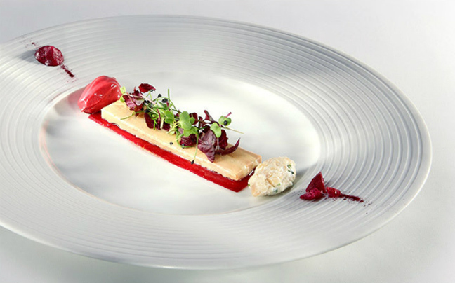 Με πιάτα όπως το καλκάνι με καπνιστό μυελό βοείου κρέατος, φύλλα λεμονιού και πράσα , ο καταξιωμένος σεφ αποδεικνύει έναν παιχνιδιάρικο χειρισμό με τολμηρές γεύσεις.