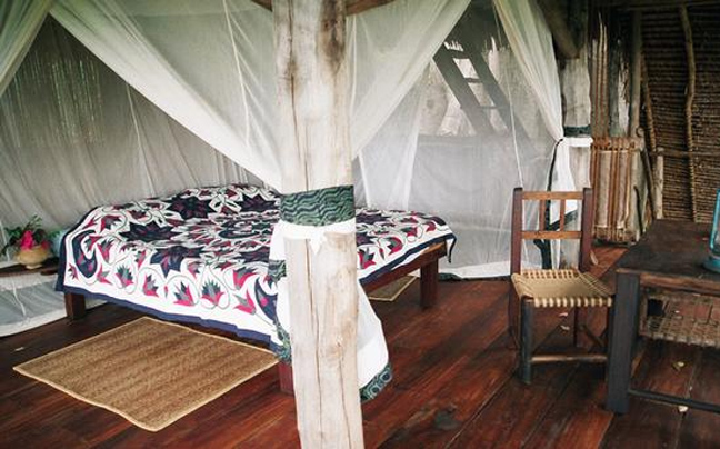 Αρκούν δύο πλατφόρμες από μπαμπού, ένα διπλό κρεβάτι με ουρανό και μια ανοιχτή ταράτσα για να χαλαρώνετε και να απολαμβάνετε το φαγητό σας.
