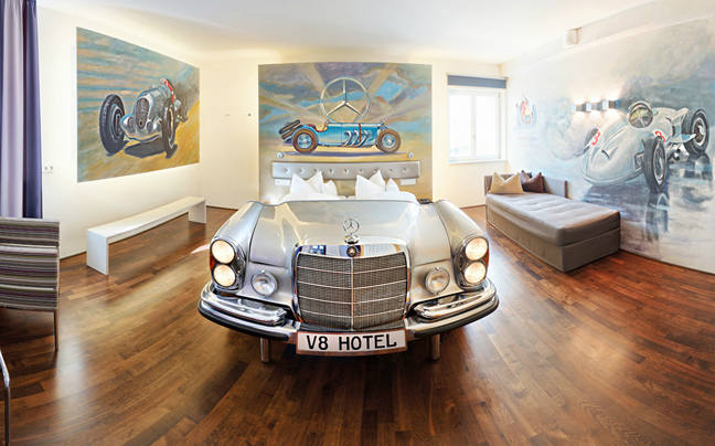 Ένα ξενοδοχείο που θα σας κάνει να λατρέψετε τα αυτοκίνητα και την ιστορία τους, το V8 Hotel, μετατρέπει τη διαμονή σας σε απόλυτη διασκέδαση!