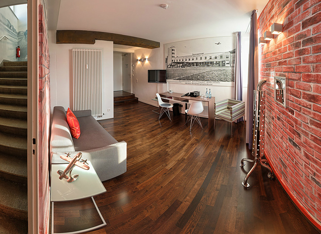 Το πιο εντυπωσιακό δωμάτιο, είναι η Τower suite, που φιλοξενείται στους χώρους του πρώην πύργου ελέγχου του αεροδρομίου. Η τριώροφη σουίτα με το εκλεπτυσμένο στυλ και την πολυτελή διακόσμηση έχει τη ζεστασιά και την άνεση ενός ιδιωτικού σπιτιού και μεταξύ άλλων προσφέρει ένα μοναδικό δωμάτιο με ένα διπλό κρεβάτι – αυτοκίνητο Mercedes!