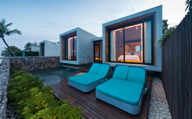 Το μοναδικό resort αποτελείται από 36 κυβόσχημες βίλες, καθεμιά από τις οποίες προσφέρει μαγευτική θέα στη θάλασσα από τις απομονωμένες βεράντες με την ιδιωτική πισίνα.