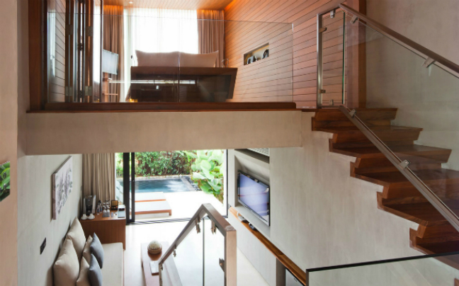 Φυσικά υλικά, όπως το ξύλο teak δημιουργούν φιλόξενους χώρους, διακοσμημένους με ανάκλιντρα με μεταξωτά μαξιλάρια και όμορφα υφάσματα.