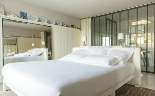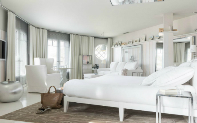Στα 12 υπνοδωμάτια και τις σουίτες κυριαρχεί το λευκό σε έπιπλα και υφάσματα, ενώ οι πινελιές παστέλ χρωματισμών συνθέτουν μια φιλόξενη ατμόσφαιρα.