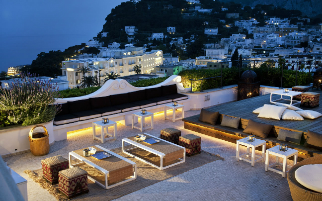Τα βράδια κλείνουν ρομαντικά στο μοντέρνο Jacky μπαρ, η βεράντα του οποίου έχει μετατραπεί στο πιο hot σημείο συνάντησης για ντόπιους και επισκέπτες του Κάπρι.