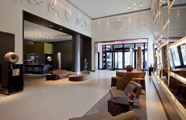 Η είσοδός του είναι πολύ… ήσυχη, καθώς δε διαθέτει ρεσεψιόν και το check-in γίνεται με τρόπο που θυμίζει Apple Store. Ευχάριστοι νεαροί περιφέρονται στο χώρο με iPads και εξυπηρετούν τους επισκέπτες.