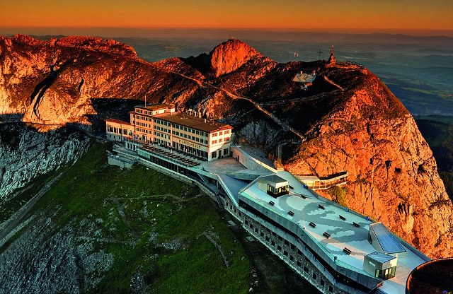 Την ίδια συγκίνηση (και ενδεχομένως ακόμη μεγαλύτερη) προκαλεί στους επισκέπτες του ξενοδοχείου Hotel Pilatus-Kulm στην Ελβετία το «ταξίδι» μέχρι να φτάσουν στην κορυφή του όρους Πιλάτους όπου βρίσκεται αυτό, στα 2.100 μέτρα πάνω από την επιφάνεια της θάλασσας.